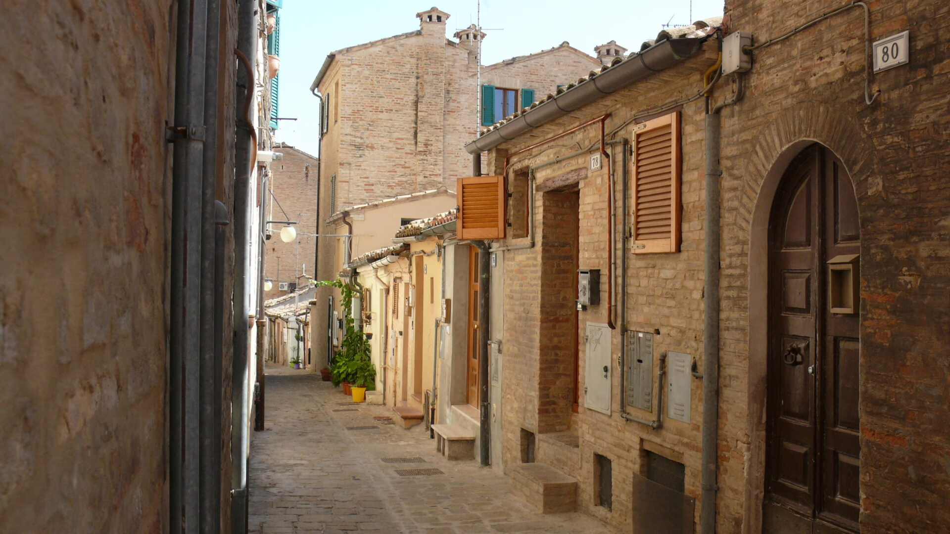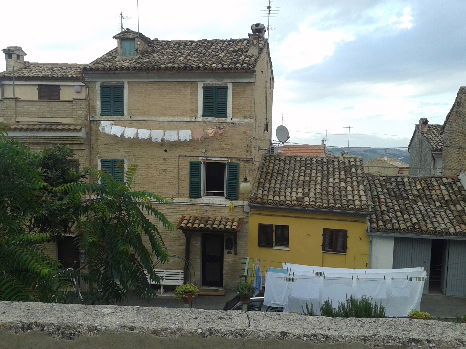 Macerata egy kis középkori városka, szolid 43 ezer lakossal, de az egész nagyon nyüzsgő, nagyon közvetlen, nagyon olasz! 🙂 A házak gyönyörűek, mindenhol van valami szín, minden anyag más, és minden ház egy kicsit hasonlít, de mégsem találni két egyformát. Az itteni kisvárosok mind ilyenek, az építkezési szokások teljesen kaotikusak, mindig meg tud lepni valami, akármerre nézek. A környék tele van egyszerű kis templomokkal, de belülről mindegyik úgy néz ki mint egy kisebb bazilika, elképesztőek! Macerata, mint a többi környékbeli város is, egy dombra épült, így a kilátás csodaszép, és ha tiszta az ég, az ablakunkból még az Appennineket is látni!