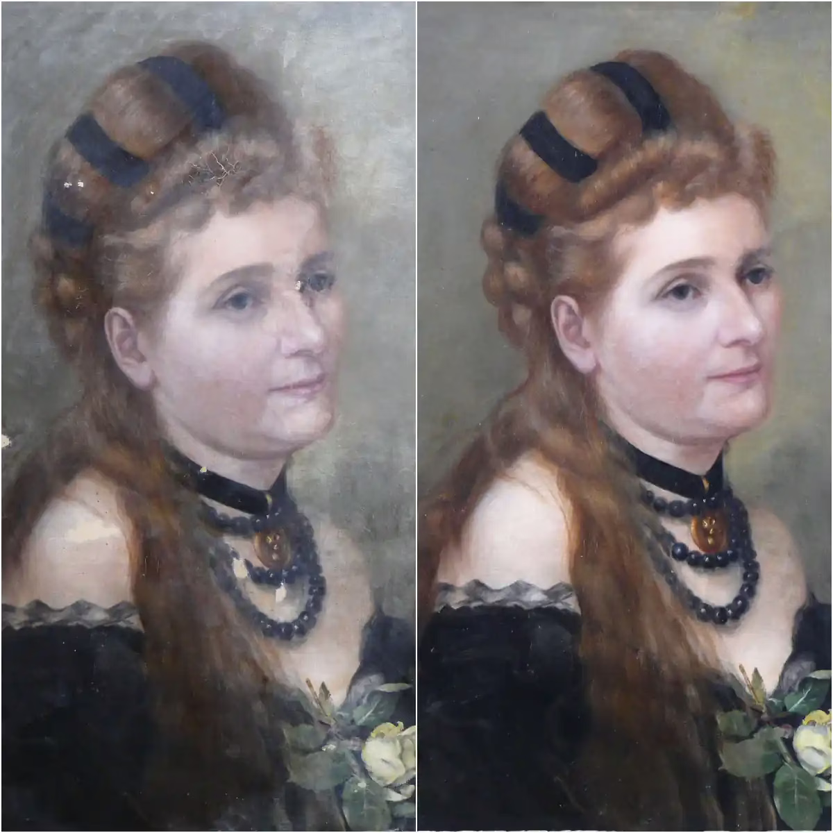 Festményrestaurálási munkáink során olajfestményeket, akvarelleket és egyéb technikával készült alkotásokat egyaránt kezelünk. A restaurálás kiterjedhet a felület tisztítására, sérült vagy hiányzó részek pótlására, a kép stabilizálására, illetve a megfakult vagy elsötétedett rétegek kezelésére. Minden beavatkozás az eredeti alkotást tiszteletben tartva, visszafordítható anyagok és technikák alkalmazásával történik – a cél mindig az, hogy a festmény visszakapja eredeti szépségét anélkül, hogy elveszítené hitelességét.