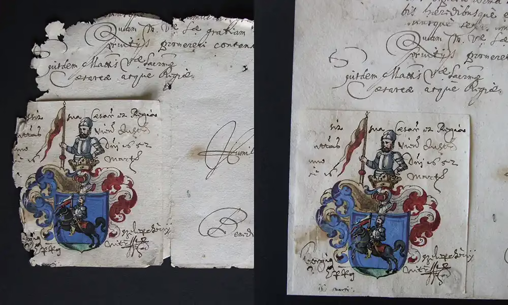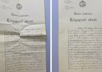 Oklevelek, diplomák, adománylevelek, akvarellek, pasztell rajzok, pergamenek tisztítása, javítása, konzerválása, pótlása.