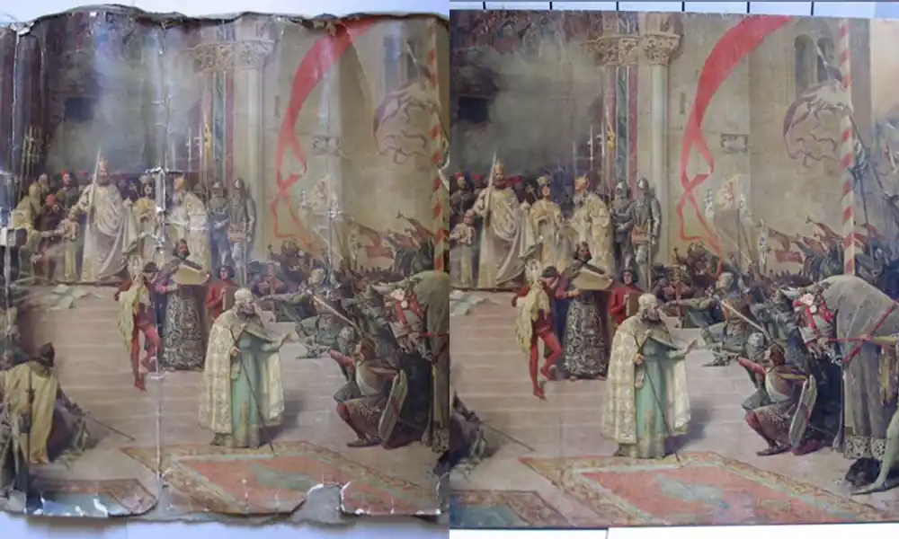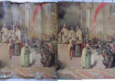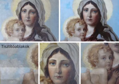 Pattogzó képek konzerválása, szakadások javítása, hiányzó részek pótlása, szennyeződések eltávolítása, lakkréteg tisztítása, újralakkozás, dublírozás, újrafeszítés.